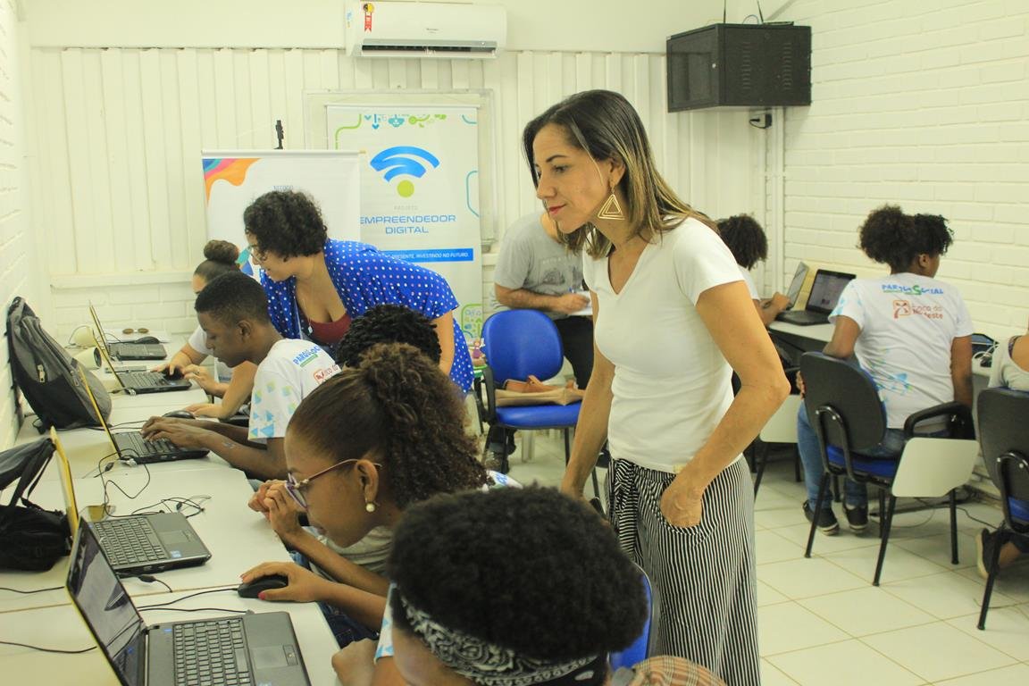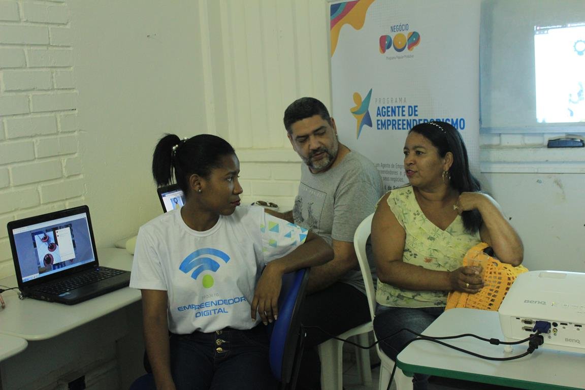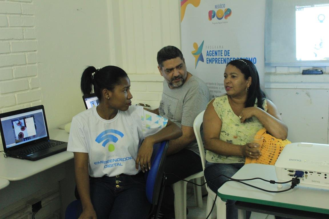 Integrantes do Projeto Empreendedorismo Digital receberam na última quinta-feira (05) a visita de três empreendedoras participantes do Programa Agente de Empreendedorismo. A ação teve como objetivo possibilitar que os jovens, que estão aprendendo técnicas de comunicação e marketing com foco em gestão de conteúdos digitais, possam aplicar os conhecimentos adquiridos durante o projeto e dar um upgrade na identidade e redes sociais dos negócios desenvolvidos pelas empreendedoras.