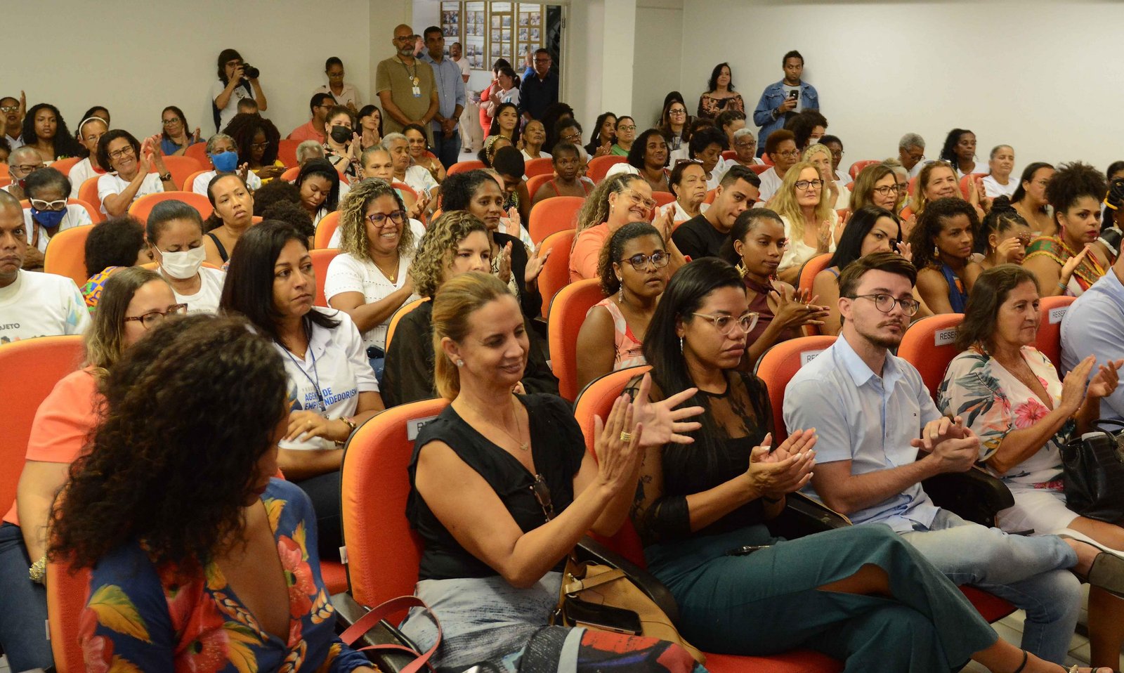 O evento foi aberto ao público e contou com a participação de pessoas de todas as idades, em sua maioria mulheres. Entre elas estavam algumas integrantes do Projeto Africanidade Afro MEJI, do bairro da Santa Cruz, que fecharam a noite com uma homenagem à capitã Sheila. Ela foi presenteada com flores.
