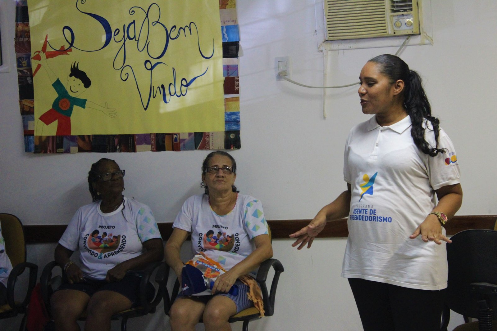 Uma ação conjunta, entre o Programa Agente de Empreendedorismo e o Projeto Convivendo & Aprendendo, realizada na tarde desta terça (14), oportunizou que idosas participassem de uma oficina para a confecção de Laços e recebessem dicas de precificação para venda.