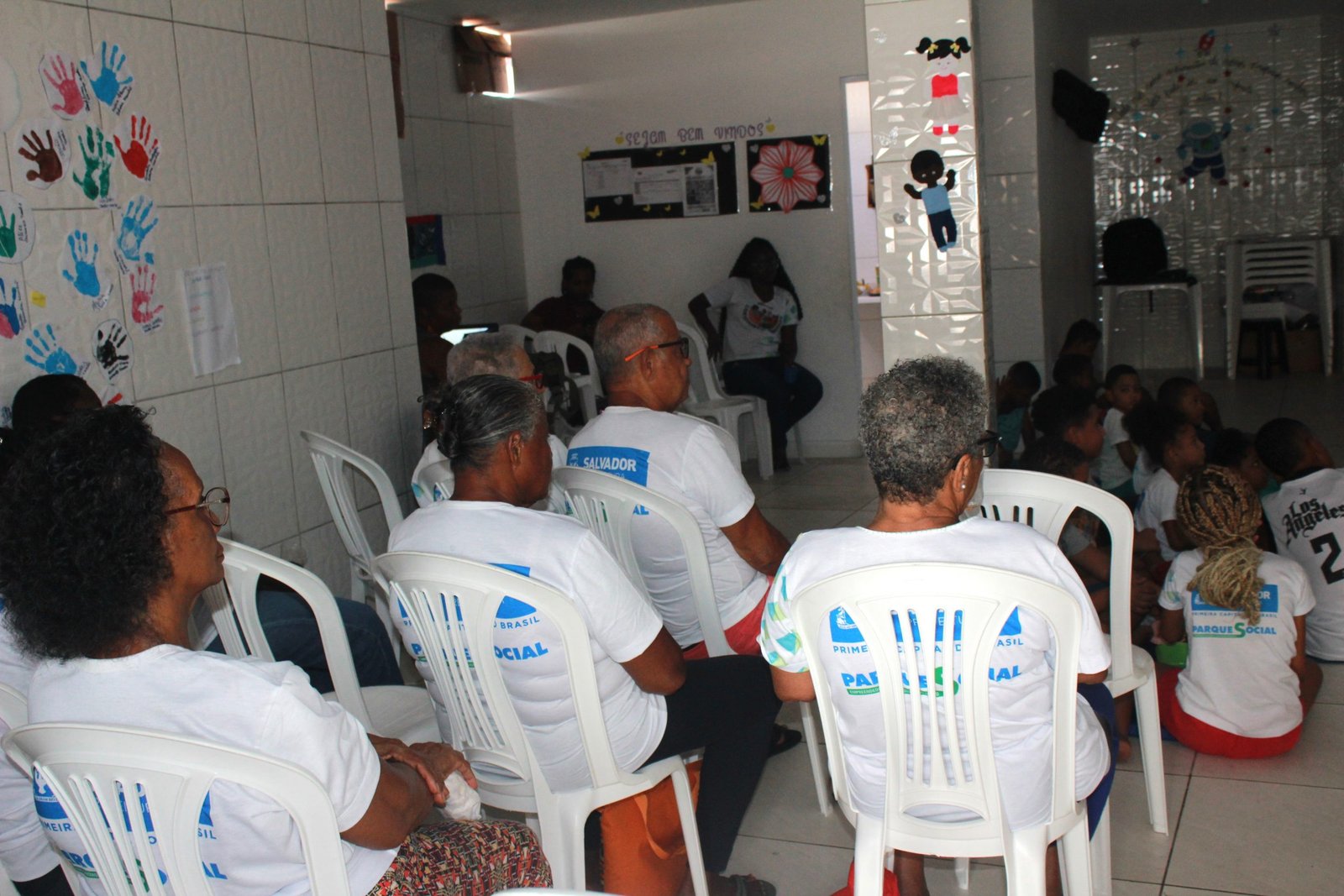 Nesta quarta-feira (11), idosos e crianças do Projeto Convivendo e Aprendendo, da unidade de Saramandaia, marcaram presença na 7ª edição da Mostra Lugar de Mulher é no Cinema. O evento tem como objetivo promover e dar visibilidade a obras cinematográficas dirigidas por mulheres e pessoas não binárias, trazendo uma diversidade de perspectivas às produções.